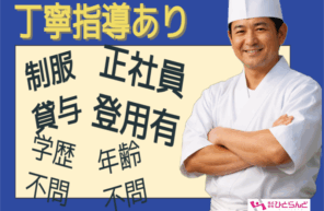 和食調理の経験がある方は優遇あります。経験年数は問いません。 経験が浅い方やブランクのある方徐々にお仕事を覚えていきたいという方にお勧めです。 少しでも早くお仕事に慣れるていただけるように、 当店の仕事の流れや調理方法をしっかりと丁寧に指導してまいります。 和食、寿司等の調理経験を活かすことができるお仕事です。 調理師免許ある方は経験年数不問です。 経験年数が少ない方も徐々に指導してまいりますので安心です。 社保完備で制服貸与も嬉しいポイント! 無料駐車場完備で、マイカー通勤できるのも◎ (マイカー通勤できる方は尚可) 未経験の方は条件ありますが応募可能です。経験者の方は特に制限はありません。 |